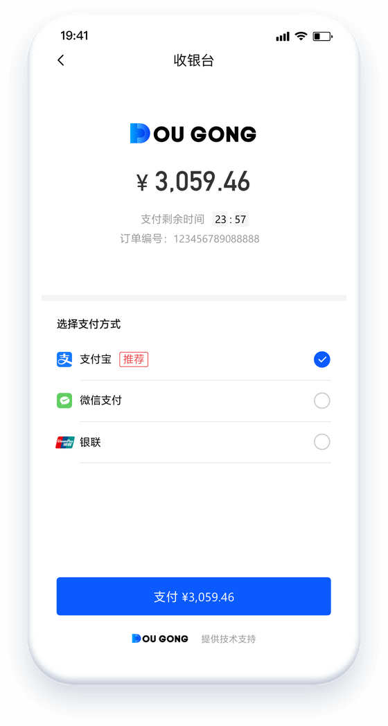 一次接入各种支付方式:微信、支付宝、云闪付、数字人民币、快捷、银联统一收银等等,支持 PC、移动端、小程序各类终端;总能找到一款适配您的业务场景。